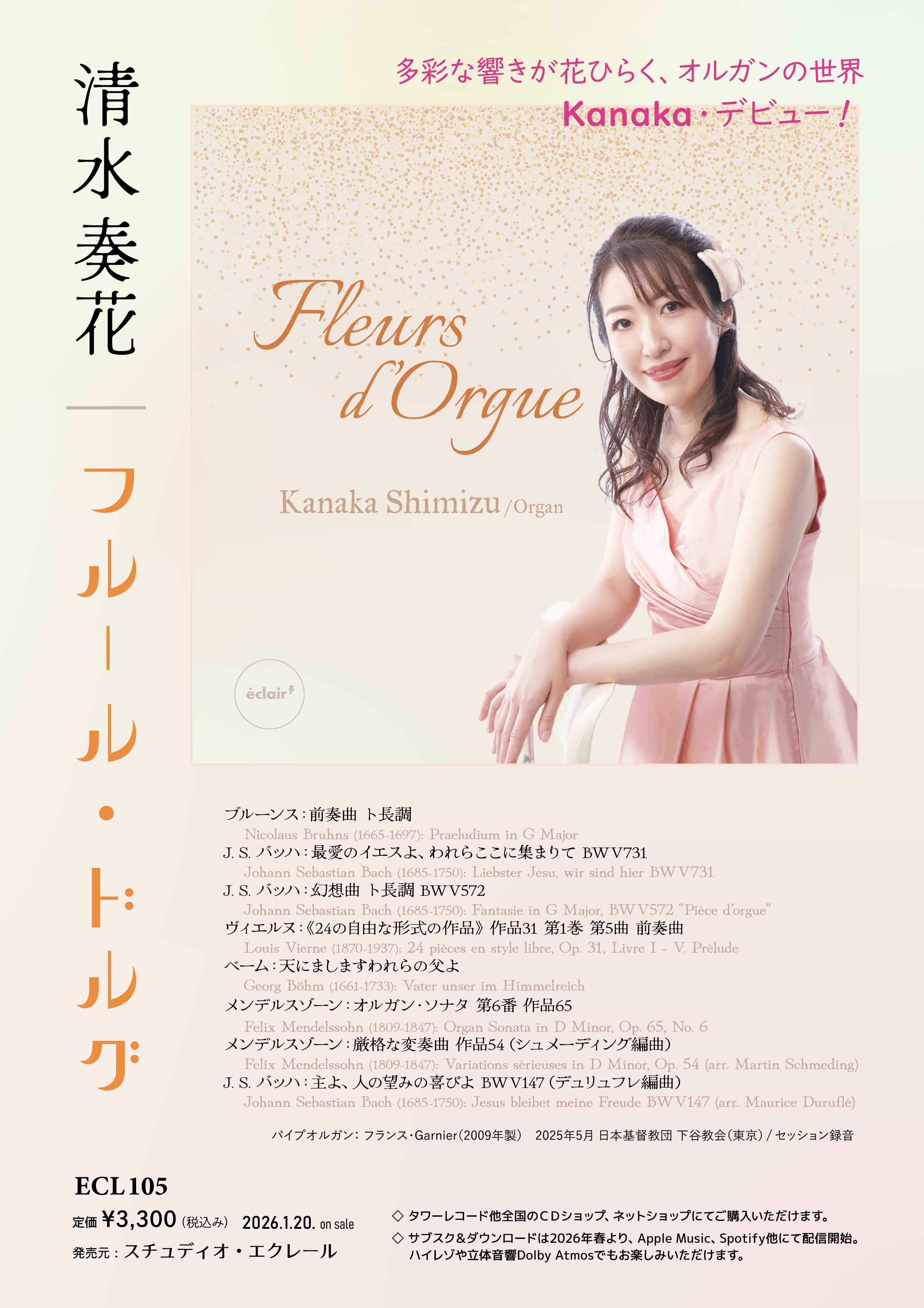 この度、初めてのソロアルバムとなるデビューCD《Fleurs d'Orgue(フルール・ドルグ)》を、2026年1月20日に一般発売いたします。